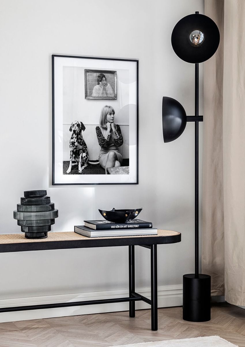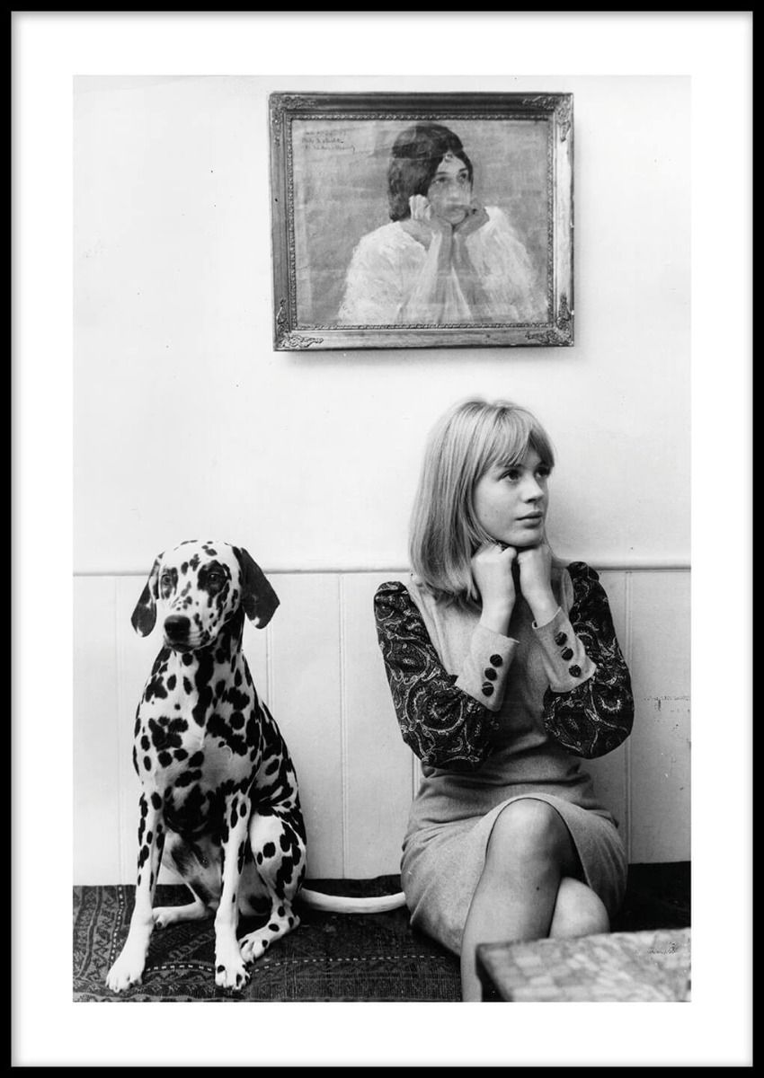 Marianne Faithfull, Schauspielerin, Sängerin und ehemalige Geliebte von Mick Jagger, posiert am 15. Oktober 1964 mit ihrem Dalmatiner in ihrem Haus in London. Ein ikonisches Foto, das als Mittelpunkt jedes Zuhauses dient. Ein Madposter-Favorit!